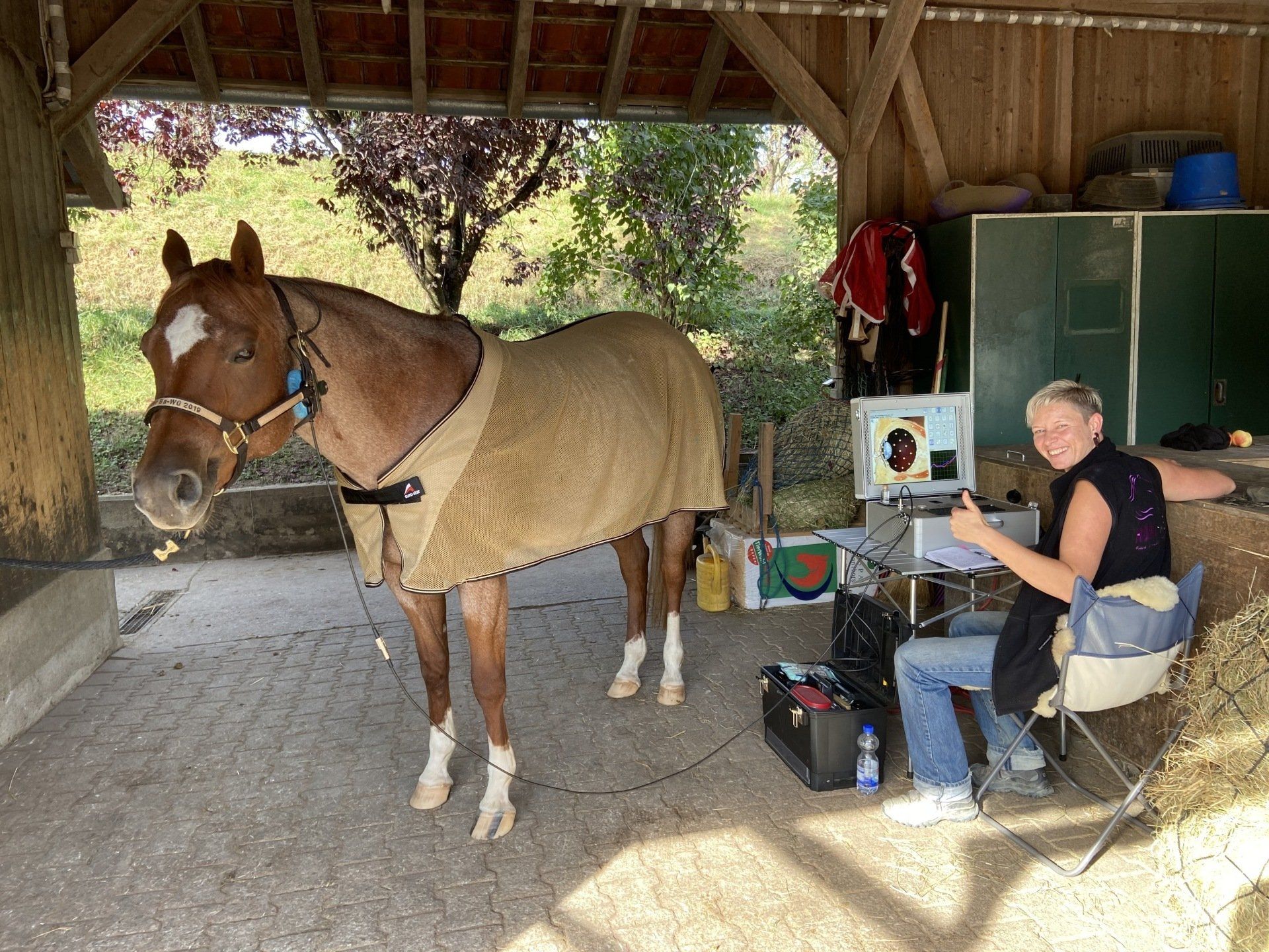 Ich komme zu dir an den Stall und scanne dein Pferd in gewohnter Umgebung mit der EAVET/MV Horse Technik.